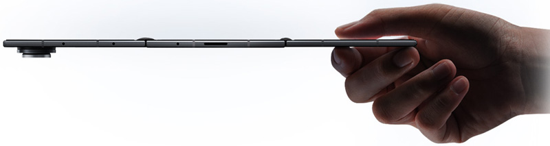 Gdy telefon już złożymy, okazuje się on dość gruby, jak na dzisiejsze standardy. Ma on 12,9 mm grubości, a więc znacząco więcej niż dwupanelowy Galaxy Z Fold, mający 8,9 mm. Za to po rozłożeniu Z Trifold jest cieńszy - ma 3,9 mm grubości, podczas gdy Z Fold 4,2 mm. Większy ekran oznacza także większą wagę. Wynosi ona 309 gramów, przy 215 gramach Z Fold.