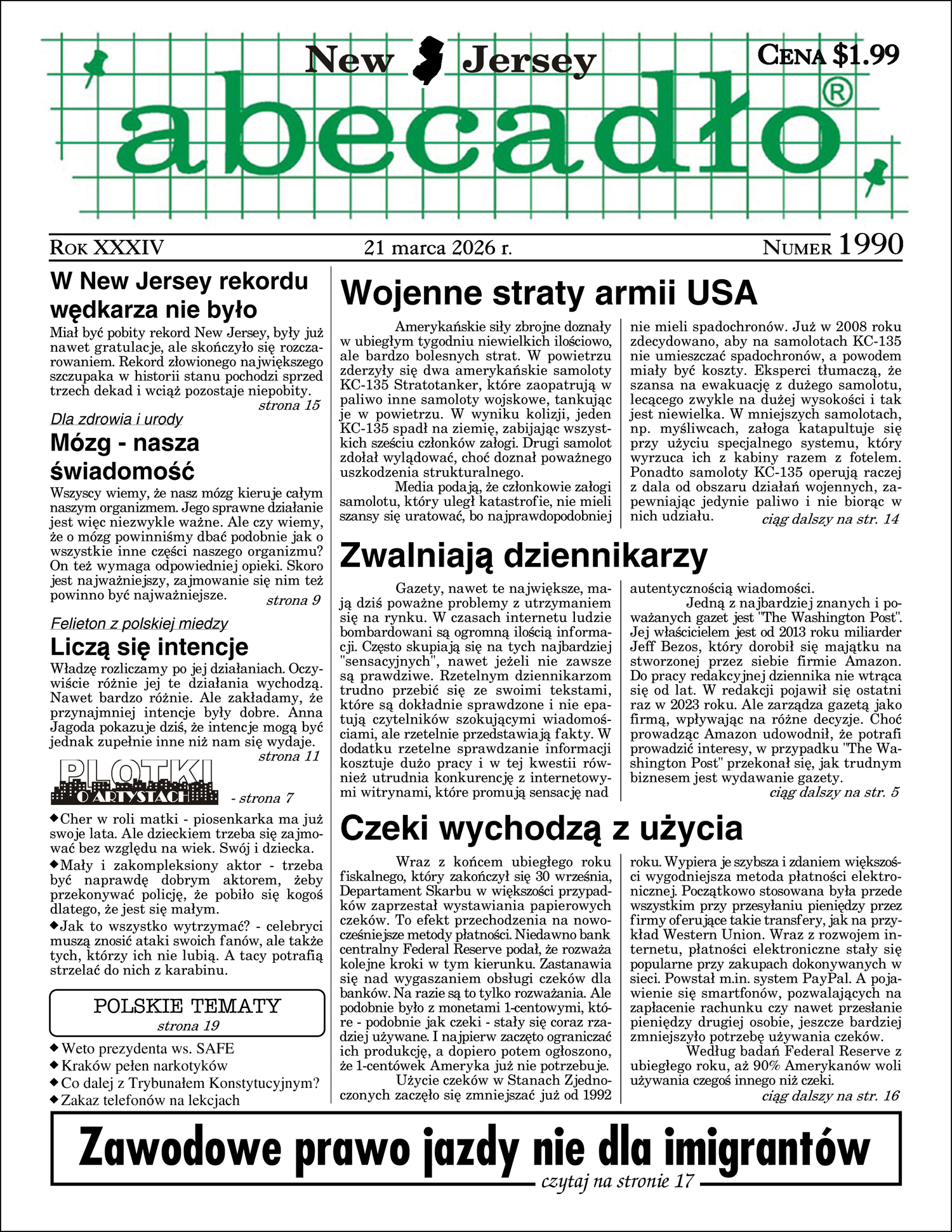 Jak zawsze, w zakładce Ogłoszenia/NAJNOWSZE znajdziesz przykładowe i wyróżnione ogłoszenia z bieżącego numeru - m.in. o LOKALACH i o PRACY. Przeczytaj też pierwszą stronę gazety i zobacz, o czym dzisiaj piszemy.