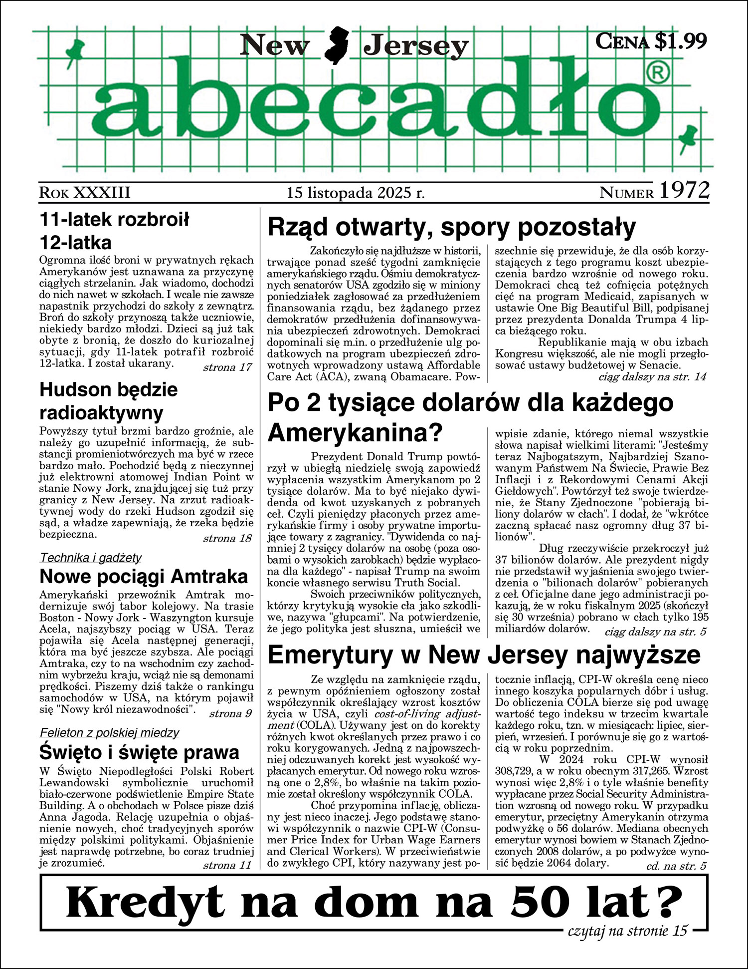 Kup gazetę, aby przeczytać o kredycie na dom na 50 lat! A na stronie internetowej zobacz najnowsze ogłoszenia o LOKALACH oraz PRACY (tych jest najwięcej), a także inne, w zakładce Ogłoszenia/NAJNOWSZE. W pozostałych zakładkach - ogłoszenia z poprzednich numerów.